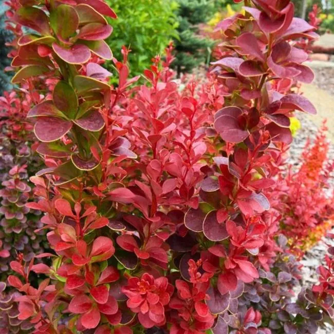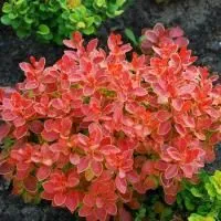 Листва: Листья яйцевидные, с гладкими краями. Весной и летом они имеют розовато-красный или кораллово-оранжевый оттенок, который углубляется в течение лета, а осенью становится ярко-красным или темно-оранжево-красным. В мае появляются крошечные жёлтые цветки, которые привлекают пчел. К концу лета образуются глянцевые красные ягоды, которые могут сохраняться на кусте до зимы и служат пищей для птиц. Это выносливый и неприхотливый кустарник, морозостойкий и устойчивый к городским условиям, а также к засухе.