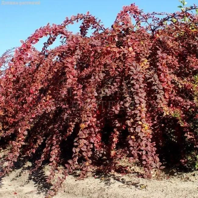Коронита ценится в ландшафтном дизайне за свою яркую, необычную окраску листвы, которая становится еще темнее осенью. Взрослое растение обычно достигает в высоту 0.7-1.5 метра, при этом диаметр кроны может составлять до 1.5 метра. Имеет округлую, пышную, раскидистую форму с изящно изогнутыми, поникающими ветвями. Листья мелкие, округлые, пурпурно-красные с контрастной яркой каймой по краю. Осенью окраска становится оранжево-красноватой или красной. Цветет в мае мелкими желто-красными цветками, которые не особенно заметны. Им на смену приходят ярко-красные ягоды, украшающие куст даже после листопада. Растет со средней скоростью, годовой прирост составляет около 15-20 см. Сорт морозостоек.