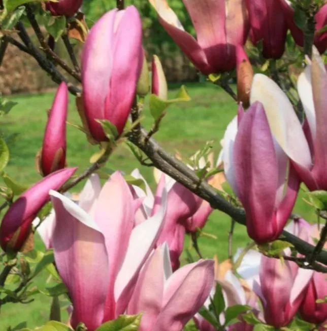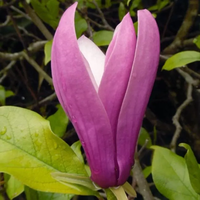 Обильно и эффектно цветущая, пользующаяся большой популярностью. Растёт в виде кустарника или низкоштамбового дерева, до 2-3 м высотой, с сильно ветвистой кроной и опадающей на зиму темно-зеленой листвой. Примечательны ее лилиеобразные цветки с узкими лепестками, до 10 см в диаметре, снаружи пурпуровые, внутри — белые, со слабым ароматом. Плоды винно-красного цвета, до 9 см, созревают в ноябре.