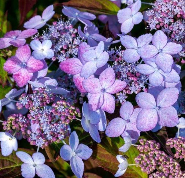 Цветение длится с июля по сентябрь. Соцветия щитковидные, диаметром 6–10 см, состоят из мелких плодоносящих цветков в центре и крупных стерильных по краям. Цвет зависит от кислотности почвы (pH). На кислых почвах цветы приобретают ярко-синий или голубой оттенок, на нейтральных или слабощелочных — розовый или лиловый. Листья темно-зеленые, с характерными зазубринами. Осенью листва окрашивается в эффектные бордовые или красноватые тона. Сорт считается зимостойким для климата средней полосы (выдерживает до -20...-25°C, по некоторым данным до -29°C).