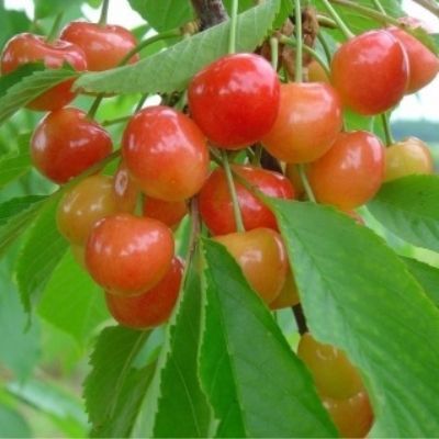 Ягоды крупные, масса в среднем 7 г, развиваются в форме сердца со светло-желтой и покровной красной кожицей с сильным восковым налётом.