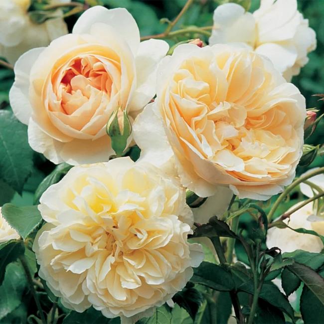 В период цветения лепестки бутонов окрашиваются в кремово-абрикосовый цвет. Цветы постепенно выгорают на солнце, приобретая светлый оттенок. Дополнительной особенностью сорта садоводы считают аромат, который напоминает запах цветов гвоздики. Обычно бутоны формируются по одному или в мелких соцветиях до 3 штук.