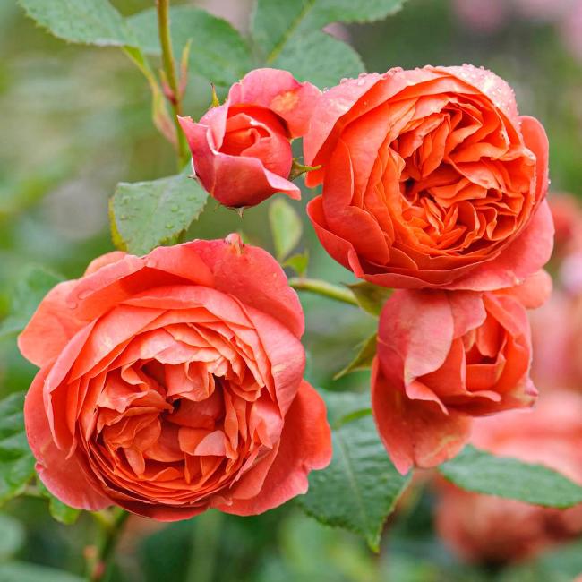 Округлые бутоны окрашены в оранжево-розовую палитру. Крупные (10–12 см) чашевидные густомахровые (45–50 и более лепестков) цветки в полном раскрытии приобретают насыщенный оранжевый цвет с тонкими переходами к более светлым окраинным лепесткам. Цветы на побегах расположены в соцветиях по 3–5 и более бутонов. Сорт обладает интенсивным цветочным ароматом с нотками бананов, чая и шлейфом листьев хризантемы.