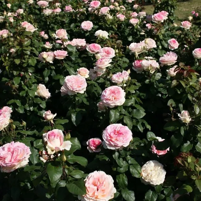 Каждая крепкая длинная ветка куста Souvenir de Baden-Baden заканчивается элегантными кремовыми цветками с фестончатыми лепестками и размытой вишневой каймой.