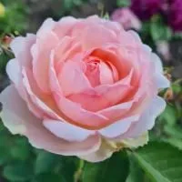 Количество лепестков у розы может колебаться от 26 до 40 шт., что придает ей особую старинную форму. Цветок махровый, что делает его еще более привлекательным. Окраска цветка сочетает в себе оранжевые и розовые оттенки, при этом насыщенность цвета является бледной.