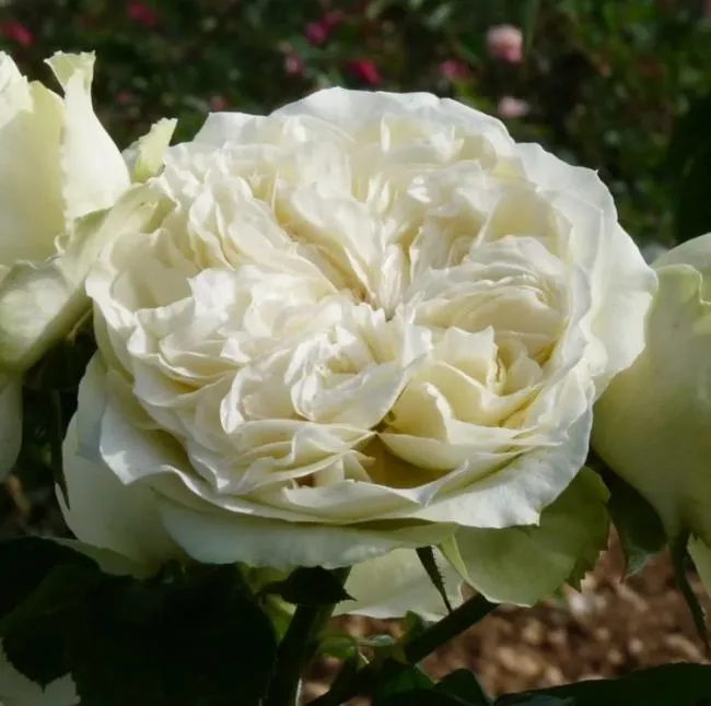 Бутоны конусовидные, цветы этой розы могут быть по форме плоскочашевидными или розетковидными. Это кустарник с крупными цветками, в диаметре некоторые достигают и 100 мм. Винтер Лодж – густомахровый сорт, на одном бутоне формируется до 100 лепестков.