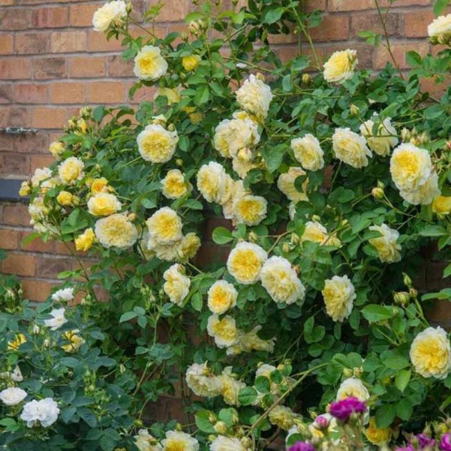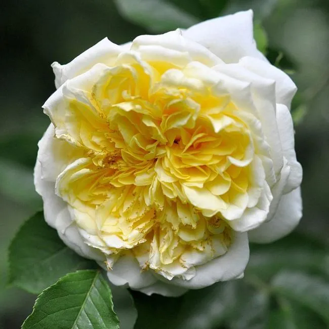 Округлые бутоны желтого цвета превращаются в чашевидные цветки, чья основная окраска состоит из палитры бледных желтых оттенков: от сливочных и кремово-белых на внешних лепестках до медовых в центре. Благодаря такой игре полутонов цветок кажется подсвеченным изнутри. Некрупные (6-8 см) густомахровые бутоны сложены из огромного количества тончайших, шелковистых, слегка закрученных мелких лепестков (от 80 до 150-170). Расположение на стебле одиночное или в соцветиях из 1-3 бутонов. Роза обладает изысканным ароматом средней силы чайной розы с нотками пряностей и мирры.