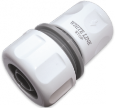 Фитинг для присоединения шланга 3/4" к поливочным пистолетам, разбрызгивателям и любым совместимым штуцерам. Специальный клапан перекрывает напор при снятии фитинга со штуцера.