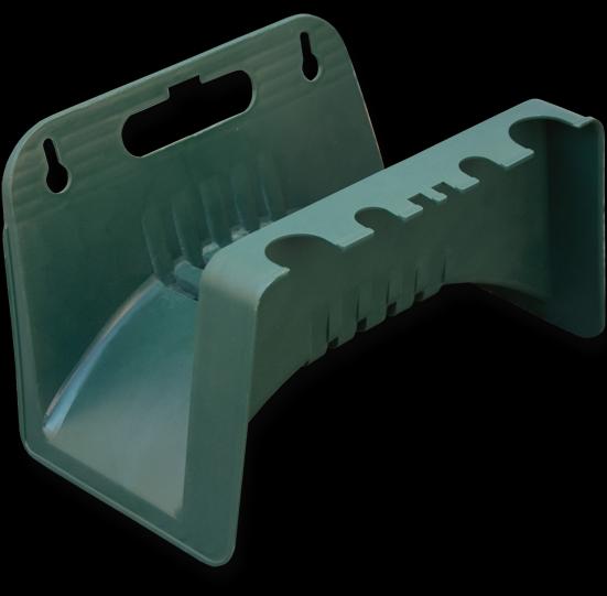 Пластмассовая вешалка для смотанного шланга, крепится на стену. Имеет выемки для крепления поливочного инвентаря. Устойчива, долговечна, надёжна.