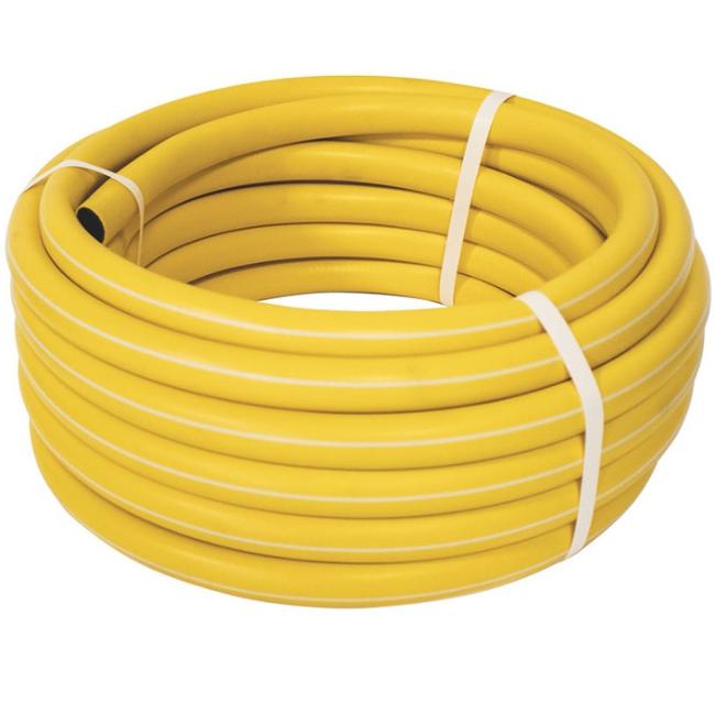 Армированный трехслойный поливочный шланг ПВХ. Стандартный поливочный шланг с сетчатой оплеткой, устойчив к УФ, не трескается, не истирается. Цвет - желтый. Внутренний диаметр 3/4" (19мм) - подходит к штуцеру насосов "Ручеек". Рабочее давление 8 бар, этого достаточно для подключения к водопроводу или насосу. Нижний слой - черный ПВХ, верхний слой - жёлтый, между ними сетчатая оплетка из полиэфирных нитей.