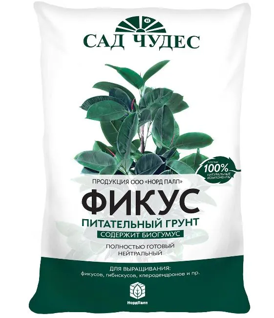 Предназначен для выращивания комнатных декоративных растений семейства вербеновых, различных видов фикусов, гибискусов, клеродендронов и пр. Это нейтральный грунт высокой плотности, содержащий мраморный отсев для повышения содержания в грунте кальция, высокообеспеченный элементами питания. Содержание основных питательных элементов, мг/л, не менее: Азот (NH4+NO3)200 Фосфор (P2O5)350 Калий (K2O)400 pH солевой суспензии 6,0-6,5.