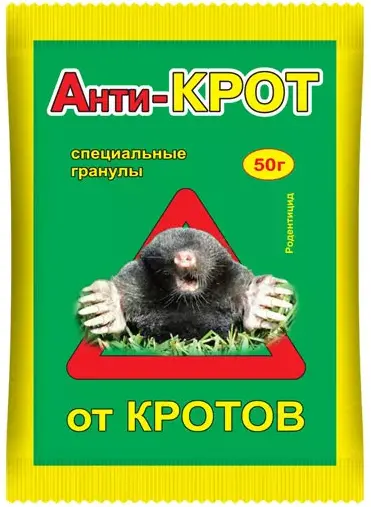 Применение: для борьбы с кротами нужно сделать вертикальный вырез в кротовине между двумя выбросами земли и в оба конца заложить по 15–20 г приманки. Затем вырез закрыть дощечкой и засыпать землей. В вырез можно заложить водостойкую трубу диаметром не менее 5 см, чтобы крот мог свободно передвигаться, и в нее заложить приманку, также засыпав землей. Проверку проводят через 2–3 дня. Если приманка съедена, то порцию добавляют, если засыпана землей, кротовина разрезается в другом месте. Погибшие кроты, как правило, недосягаемы для человека. Об их гибели свидетельствуют невскрытые кротовины и отсутствие свежих выбросов земли.
