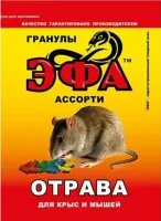 Гранулированная приманка ЭФА ассорти - это уникальное сочетание современного действующего вещества и препаративной формы в виде гранул позволяет эффективно уничтожать грызунов. Эфа гранулы обладат высокой родентицидной активностью в отношении: