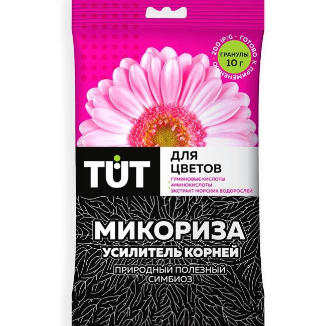 Экстракт морских водорослей способствует развитию крепкой корневой системы и листвы, а также появлению большого количества цветов и плодов. Микориза хорошо подходит для различных почв, климата и растений.
