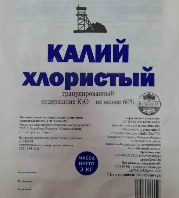 Является самым экономически эффективным источником калия и подходит для восполнения истощенных калием почв всех типов. Рекомендуется для внесения под большинство зерновых, масличных, сахароносных и волокнистых культур с высокой потребностью в калии и малочувствительных к хлору, а также для ежегодной подкормки почв с целью поддержания содержания калия на оптимальном уровне.