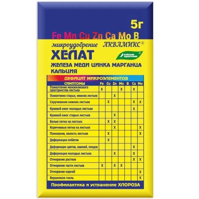 Сбалансированный комплекс высокоэффективных, легкодоступных для растений микроэлементов – Fe, Mn, Zn, Cu, Ca в виде сложных органических солей – хелатов, а также B, Mo. За счет этих элементов увеличивается урожайность, они способствуют полному и сбалансированному усвоению питательных веществ из почвы, повышают устойчивость к болезням, засухе, холоду, ускоряют и улучшают цветение, увеличивают количество завязей, снижают уровень нитратов в овощах и фруктах.