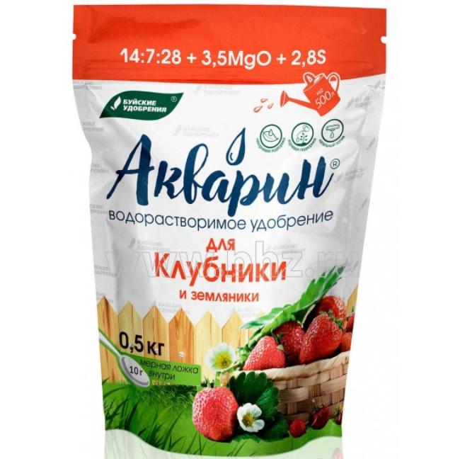 Акварин для клубники и земляники - водорастворимое удобрение, в состав которого входит азот, фосфор, калий, магний, сера и микроэлементы – железо, цинк, марганец, медь в хелатной форме, а бор и молибден – в минеральной. Благодаря кислой реакции (рН) удобрения, оно легко растворяется в холодной воде и более эффективно усваивается корневой системой или листовой поверхностью растений.