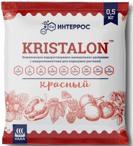 КРИСТАЛОН® Красный отлично растворяется в воде и может вноситься не только под корень, но и по листу. Эффективность листовых подпиток повышает комплекс микроэлементов в составе препарата – они помогают усваивать макроэлементы и сами по себе дополнительно подпитывают растение.