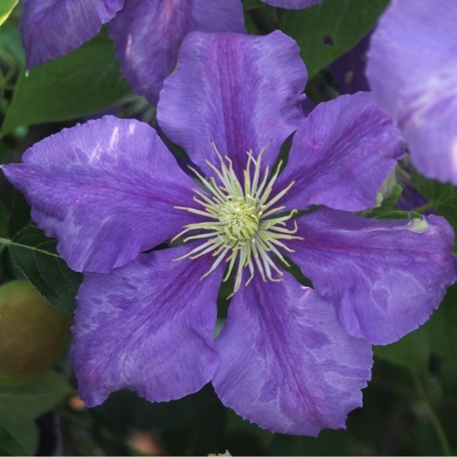 Формируются небольшие бутоны, в ходе цветения раскрываются они в достаточно крупные цветки. Держатся цветки от 10 до 15 дней. Еще раз за сезон цветы можно заметить в августе. Раскрытые чашелистики довольно крупные, их диаметр составляет 10-15 сантиметров. Лепестков у бутона примерно 6-8 штук. Они имеют слегка овальную форму, с заостренным верхом. Обычно длина одного лепестка достигает 8 сантиметров. Цвет у него ярко-голубой.
