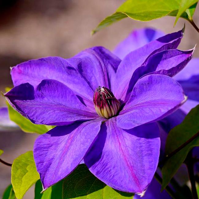 Цветы имеют диаметр от 14 до 23 см и состоят из 6-12 лепестков (чашелистиков), которые налегают друг на друга. Тычинки контрастирующего тёмно-красного цвета добавляют яркости фиолетовым цветкам.