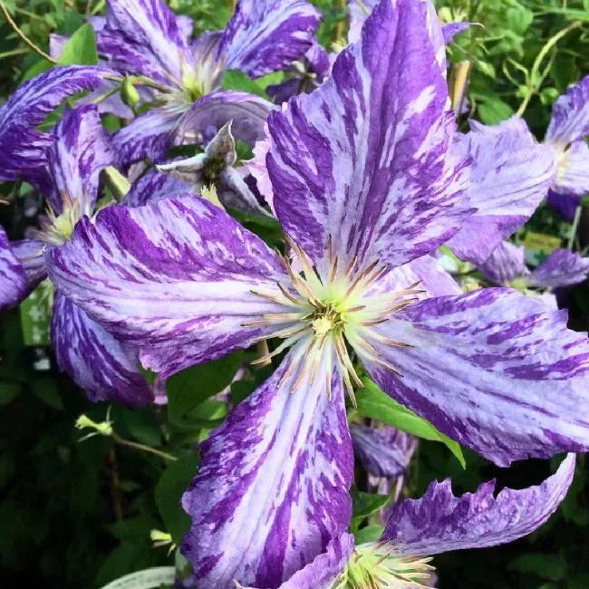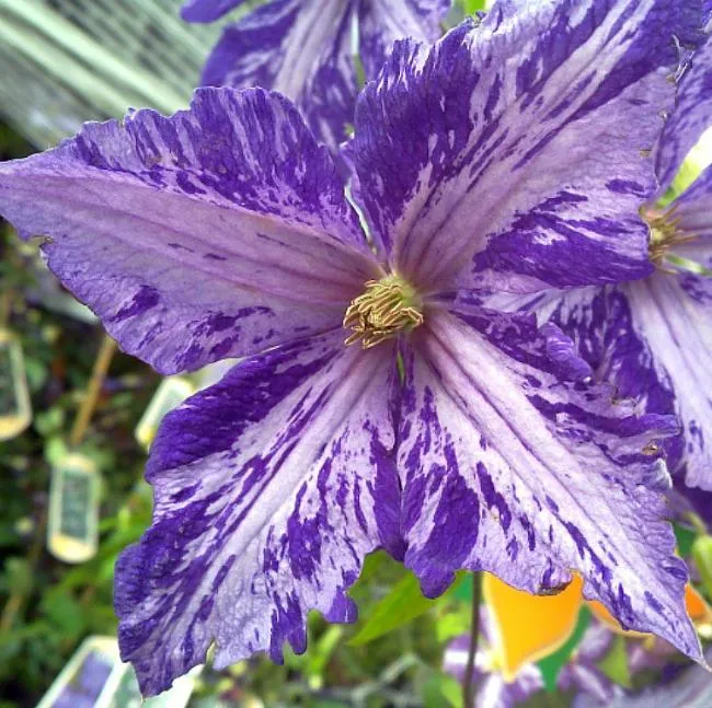 Бутоны, насчитывающие от 4 до 5 лепестков, умещают в своей сердцевине светло-зелёные тычинки и кремово-жёлтые пыльники. Крупный цветок имеет оригинальную форму. Края слегка волнистых лепестков окаймлены удивительными зубчиками, словно их изрезали фасонными ножницами. Заостренные лепестки объединены в необычные цветочные звёздочки, диаметр которых обычно равняется 10 см.